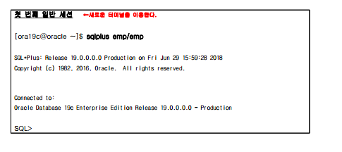 SQL> CONN emp/in ← 암호를 고의로 틀리게 입력한다.