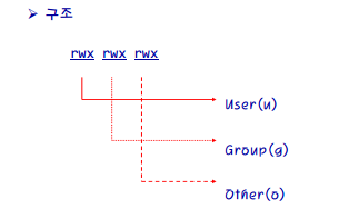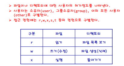 - 파일에 대해서 퍼미션과 관계없이 소유자만 삭제 가능하게 할 때 디렉토리에 other 권한을 제한한다.