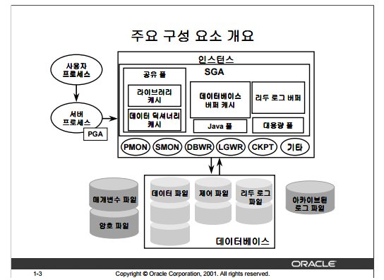 오라클서버는 오라클인스턴스와 오라클 데이터베이스로 구성.