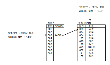 SELECT * FROM 학생 WHERE 학번 = '003' -> INDEX SCAN
